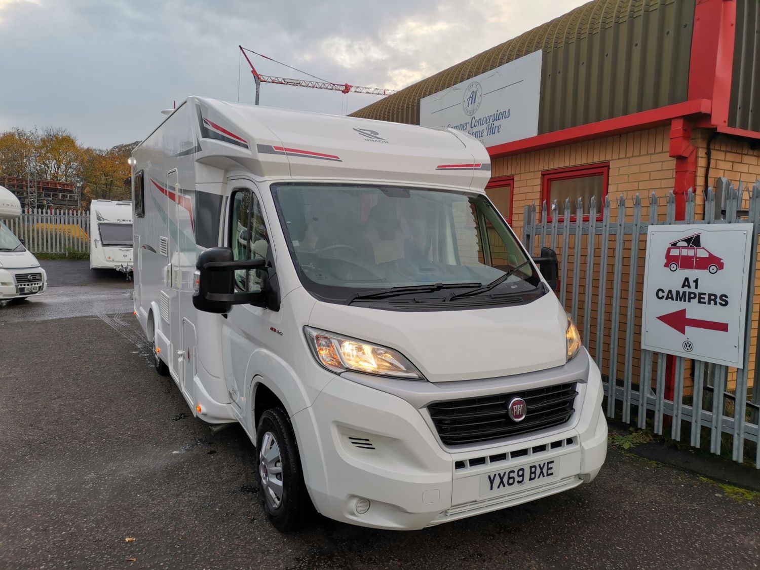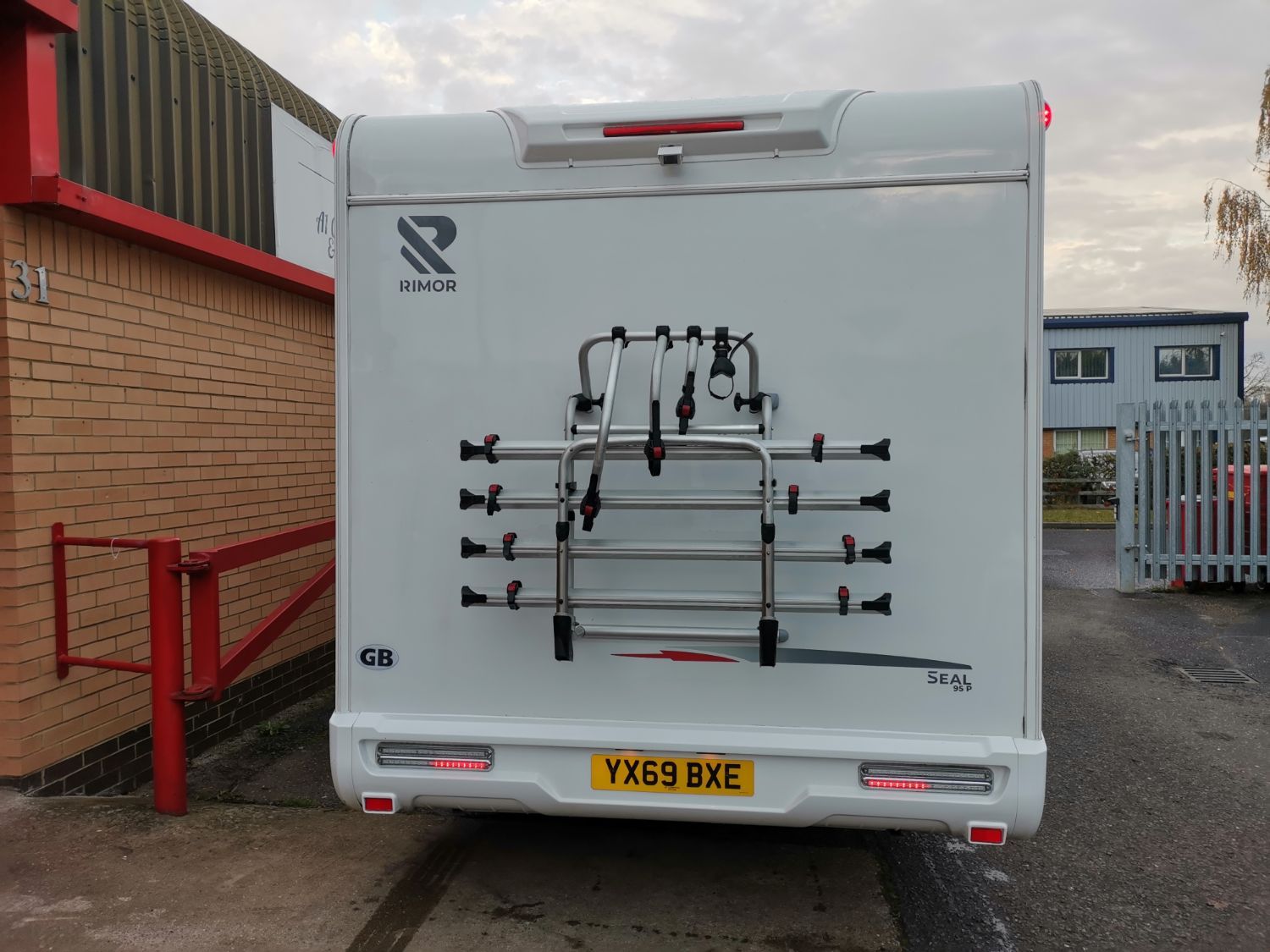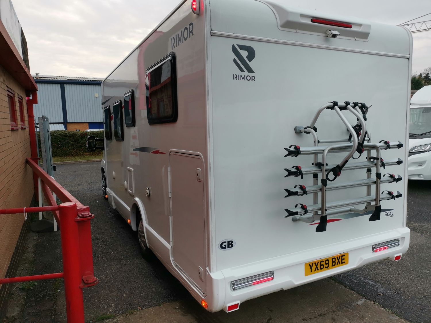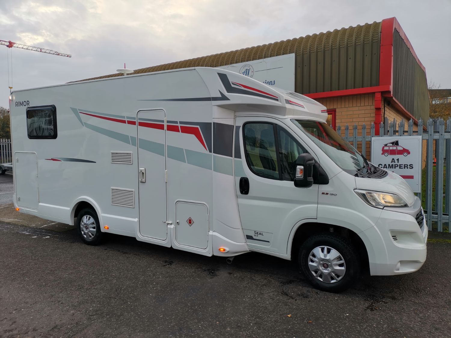 ****IN STOCK NOW**** .Rimor Seal 95p motorhome .2020 (69) . Rear double bed which separates in to two single beds .TV and Multi directional Aerial .DVD player .Large Rear Storage area .Full size fridge .Separate Toilet and shower rooms .Cab air conditioning and Cruise control .Reversing camera .Very good condition throughout .Any inspection welcome .Part exchange welcome .Finance available on request .Virtual, distanced video tour available.